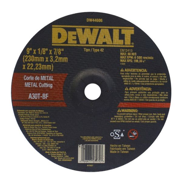 Estás revisando:Disco Corte Metal Acodado 9”x1/8”x7/8” DeWalt – Abrasivo