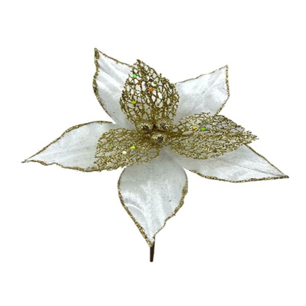• Flor poinsettia blanco con dorado decorativa.